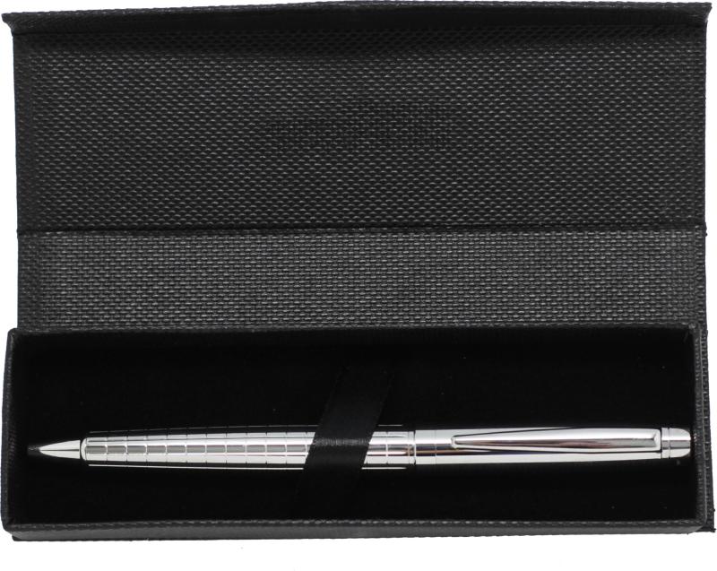Boligrafo metal clasicc con capuchon liso y la parte de arriba en cuadros grabados color cromado en brillo