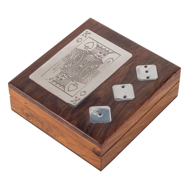 Caja decorativa para guardar la baraja de cartas y los dados. (vienen incluidos)