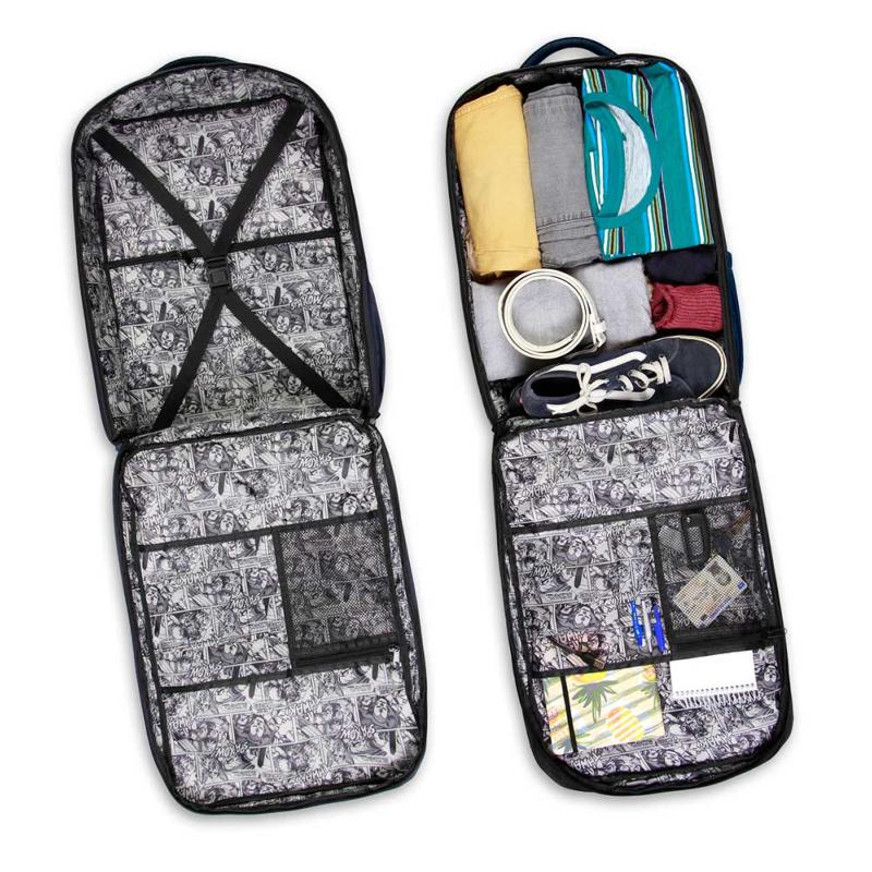 | Mochila Mercury Cabin Capitán América Gears. Capitán América. Mochila de cabina que cumple con las restricciones de equipaje de mano de la mayoría de aerolíneas y se guarda bajo el asiento. Exterior ligero e impermeable. Tres compartimentos con apertura de 180°, forro interior estampado y correa de sujeción enel compartimento principal. Compartimento para portátil de hasta 15”, con bolsillo para tablet y accc |