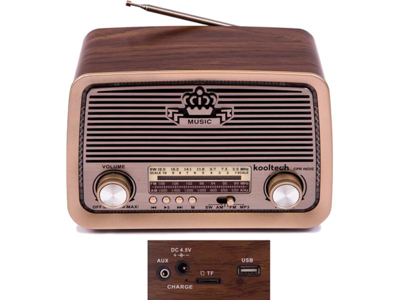 Radio analógica modelo retro, color beige, Radio BLUETOOTH FM/AM/SW, entrada USB / TF y cable auxiliar, sintonizador preciso, potencia 6W, batería interna, funciona a corriente y a pilas (NO INCLUIDAS)