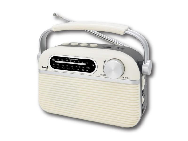 RADIO CON ASA VINTAGE, MODELO AÑOS 60, CON ANTENA TELESCÓPICA, COLOR CREMA, DIAL ANALÓGICO, AM/FM/SW, BLUETOOTH, USB-MICRO SDD, RUEDA XL, RECEPCIÓN ALTA CALIDAD, CABLE ALIMENTACIÓN, BATERÍA RECARGABLE 1200mAh,2X "UM-1" PILAS NO IN